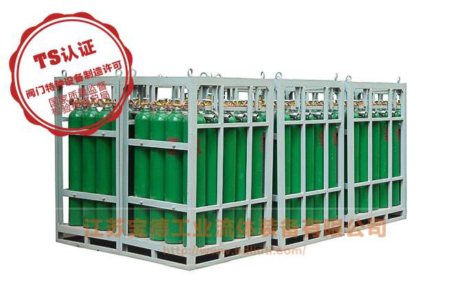 气瓶集装格是用来将散装气瓶集束在一起的金属结构架,要求结构紧凑,设计合理,重量轻,抗拉强度强。该设备适用于集装供气和大规模用气的单位和用户。使之能便于叉车的叉装,吊车的吊装和车辆运输以及工作场地的随时移动。集装格的氧、氮、氩气的工作压力是15Mpa,集装格一般按用户要求可以高压充入高压输出,也可高压充入经过减压器减压,低压输出,该设备使用方便安全可靠,工作效益高,是目前国内受国外影响一种适时的新兴装置。